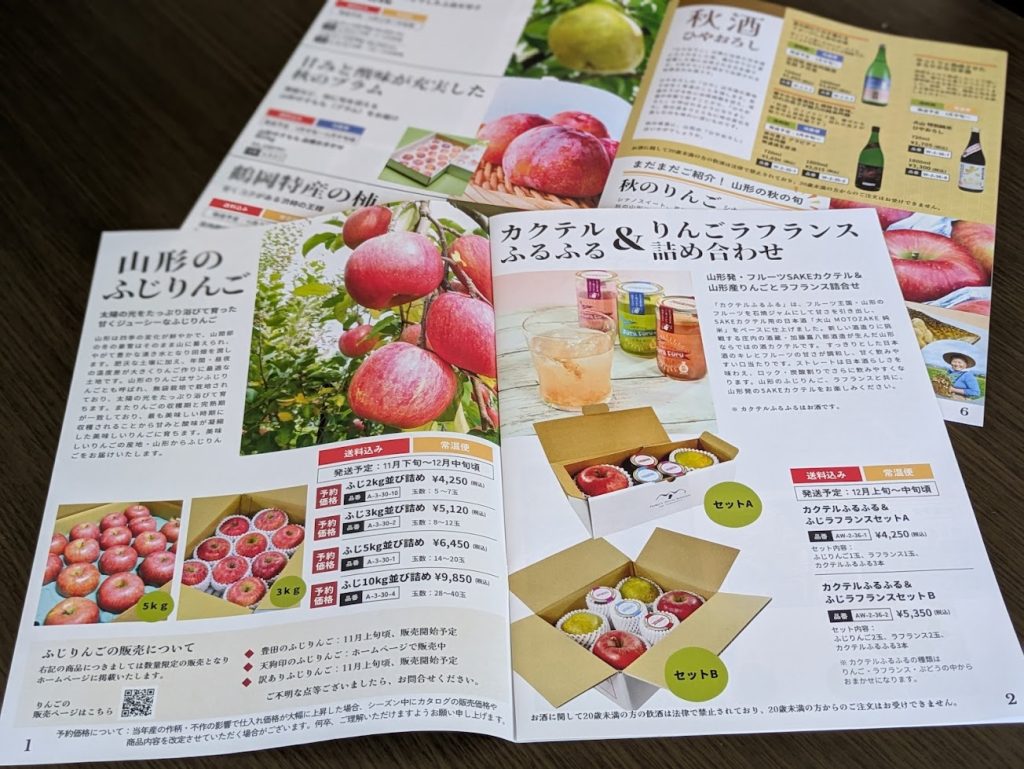 「やまがた朝日屋」さんの商品紹介チラシが冊子カタログへとリニューアル。山形の旬の恵みがより選びやすくなりました!