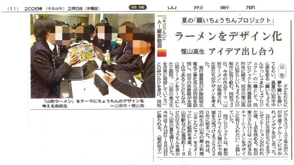 2月3日には、同校で令和8年度「山形らしいちょうちん」のテーマ発表会が開催され、発表されたテーマは「山形ラーメン🍜」です。